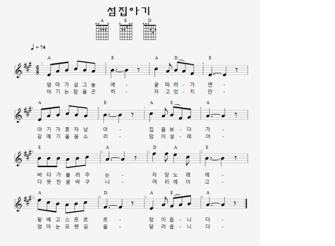 🎶 섬집 아기 (E, A, D 코드로 편곡)